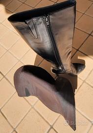 Stivale in pelle nero tacco classico e zeppa moda segue la gamba ma non stringe.