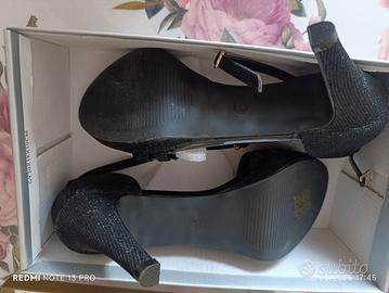 Scarpa elegante n.41 ,comoda e per pianta larga, mai indossata. Altezza tacco 10 cm,con plateau di quasi 2 cm.