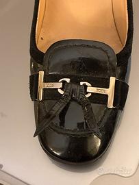 In vernice nera queste scarpe marca Tod’s sono bellissime e comode. Messe due volte perché ho un problema ad un piede e non metto tacchi. Perfette sotto jeans, pantalon e calze nere con abiti.