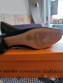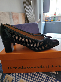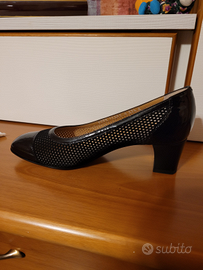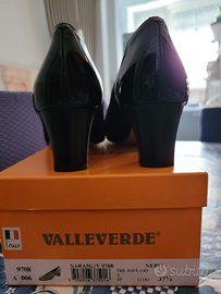 Ideale x la primavera - elegante prodotta da Valleverde - in vernice e simil camoscio traforato - adatta anche ai jeans - 37 1/2 ma calza un 38 - tacco cm 5 - mai usate - valore euro 280,00 - prezzo outlet euro 120,00 - vendo