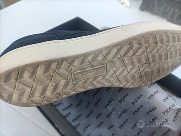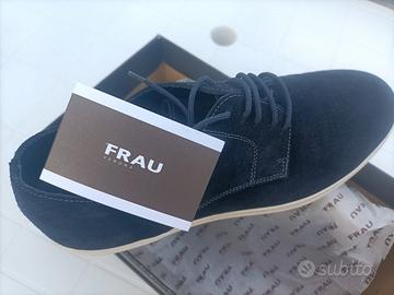Scarpa da uomo, originale FRAU, scamosciata, colore blu con suola bianca. Numero 43. Allacciatura a cinque buchi, stringa tonda.