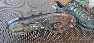 Scarpe Mountain Bike Gaerne Mtb G. Kobra nere numero 46. La tecnologia Gaerne combinata con il know-how dei progettisti e dei tecnici Michelin, ha dato vita alla nuova suola in fibra di carbonio Light Light Mtb, offrendo il giusto mix di prestazioni, durata, resistenza e leggerezza. Struttura in carbonio offre un'eccellente rigidità e potenza nella pedalata. Battistrada in gomma Michelin (parzialmente rovinatonin punta) combina una mescola progettata per bilanciare le prestazioni e la resistenza all'abrasione. La forma adottata consente una migliore autopulizia e un immediato distacco del fango. Per iciclisti che necessitano di una presa ancora maggiore.
