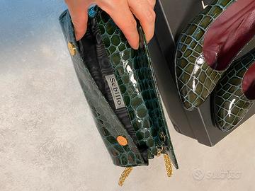 Scarpa in pelle vero usata privata solo le suole sono graffiati. Il resto è buona condizione . Prezzo 20 euro . La borsa elegante in pelle vero stampa in pitone e Ottima condizione come la nuova . Se acquistate tutte insieme scarpe + borsa prezzo sono 50 euro .