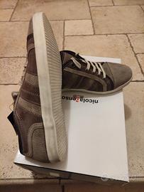 Scarpa casual/elegante in pelle scamosciata ecrù/marrone , marca Nicola Benson , Made in Italy , numero 40 , suola sfumata effetto invecchiato , nuova con cartellino e scatola originale , mai messa come da foto .