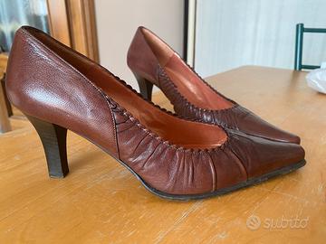 Scarpa in pelle marrone, nr 38. Tacco 7 cm. Melluso. Usate pochissimo