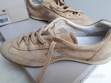 Scarpa mocassino Hogan Scarpa mocassino Olimpia bassa in camoscio beige macramè. Numero 36