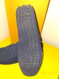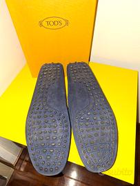 calzatura mocassino da uomo di Tod's. camoscio blu e suola in gommini. usata pochissimo e quindi in ottime condizioni. misura 8 e mezzo che calza piu o meno il 43