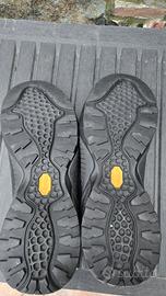 Scarpa Mojito originali, versione classica (prima serie), oggi difficili da trovare in queste condizioni. Colore nero in pelle scamosciata (suede), con cuciture a contrasto e design iconico ispirato al mondo dell’arrampicata. Vendute con scatola SCARPA (non originale del modello) Caratteristiche principali: Tomaia in suede di alta qualità Allacciatura estesa fino alla punta (stile climbing) Suola Vibram® con ottimo grip Puntale in gomma protettivo Costruzione solida, più “piena” rispetto a molte versioni recenti 👉 Versione originale delle Mojito, molto apprezzata per qualità dei materiali e robustezza. Ideali per uso quotidiano, viaggi e tempo libero.