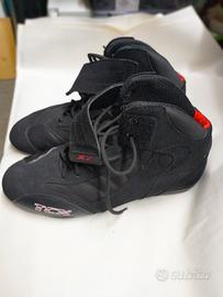 Vendo scarpe da moto TCX in pelle scamosciata nera. Taglia 42 vestibilità regolare. Come si vede è ancora in ottime condizioni.