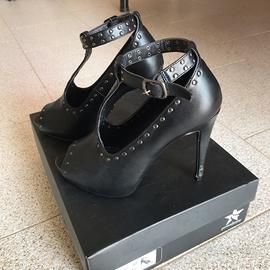 Vendo scarpe con il tacco nere tg. 37 di primadonna open toe. Tacco 12 cm. Usate una serata e mai più messe. Gommini di ricambio per il tacco come in foto.