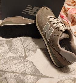 Scarpa New balance 574 grigia , tomaia in pelle scamosciata grigia e tela .