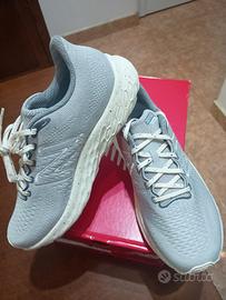 Vendo Scarpe da uomo New Balance Fresh Foam X Evoz V3, colore grigio, da running, ideali per l'uso quotidiano e su lunghe distanze. Ammortizzazione massima grazie all'intersuola Fresh Foam X, abbinata a tomaia in mesh tecnico leggero e traspirante. Peso 276 grammi. Lacci regolabili.