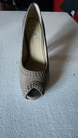 Scarpa Ash open toe con tazzo e zeppa, vera pelle color greige/tortora video su instagram salso1964