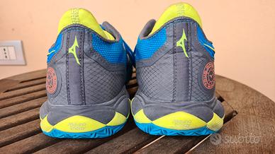 Scarpa da Padel Mizuno tour wawe enforce. La suola e l'assetto in ottime condizioni ( vedi foto). TG. 41 . La scarpa sx presenta un segno d'usura da sfregamento nella parte interna ( vedi foto)