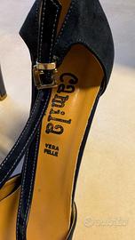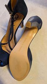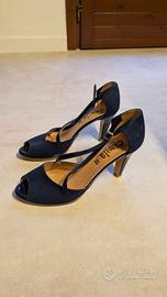 Scarpe peep-toe con tacco alto in camoscio blu scuro "Camila" taglia 40, usate pochissime volte.