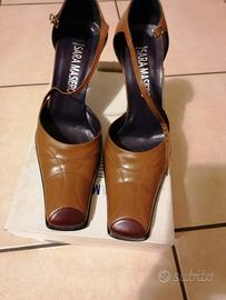 scarpa pelle colore senape/bordo