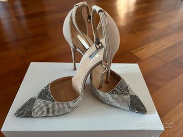 Scarpa elegante in pelle con cinturino. Le punte sono fatte di cristalli Swarovski. Mai indossate dopo l’acquisto Tacco 12 misura 39 EU