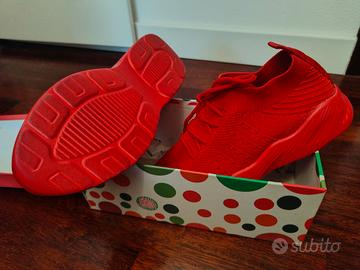 vendo per inutilizzo e cambio numero scarpe donna numero 37, materiale in tela modello Slip on, comode leggerissime flessibili colore rosso vivo con lacci frontali.