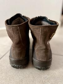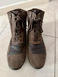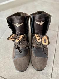Scarpa Stivaletto modello pilota Aeronautica Militare con stemma Frecce Tricolori. Misura 42 Colore marrone con chiusura lacci e zip. Suola in gomma. Usati ma in ottime condizioni.