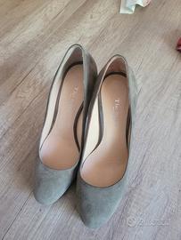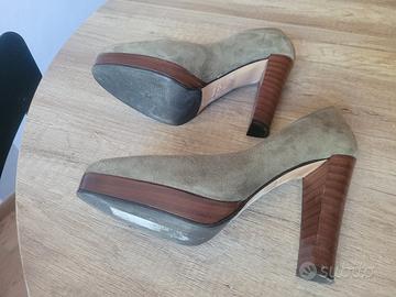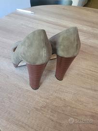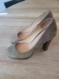 Eleganti décolleté con tacco alto, perfette per completare ogni outfit. - Materiale scamosciato. - Tacco robusto e comodo. - Design classico e raffinato. Usato una volta a cerimonia,come si vede ha ancora etichetta sotto la suola in vero cuoio