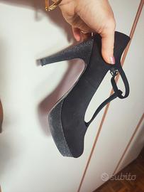 Scarpe con tacco 11 cm, plateau alto in argento come il tacco, molto eleganti, usate solo in due occasioni .