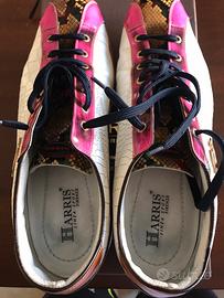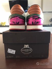 Scarpa uomo Harris, taglia 11. Scarpe comodissime e con un design molto bello ancor più enfatizzato dall’abbinamento di colori. La suola è rossa, i lacci blu. Le scarpe sono state indossate mantenendo peró una grande cura.