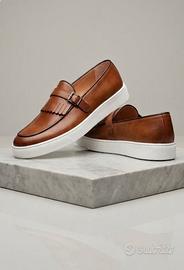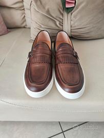 scarpa uomo mocassino in pelle marrone con frangia numero 41
