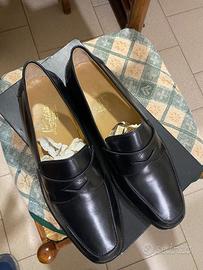 Scarpa mocassino lavorata a mano, in vera pelle, nera, senza lacci, fodera interna in pelle. Sottopiede, suola e tacco in vero cuoio, con antiscivoli. Materiale e manodopera italiana, qualità e comodità di prima scelta. Misura 42. Nuova.