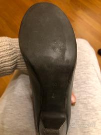 Molto resistenti, comode. Qualche danno sulla pelle sul tacco, ma niente che una bella lucidata e ciabattino non possano sistemare. Cinturino comodissimo perchè si allunga con elastico.