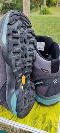 scarpone da donna da trekking. utilizzato 10 uscite. completamente in gore Tex impermeabile e traspirante. allacciatura alta e battistrada vibram ottimo su ogni terreno che sia roccia o terra. colore come da foto. in veramente ottimo stato.