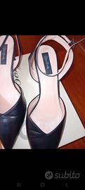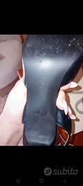 bellissime e quasi nuove scarpe con tacco a spillo, in semipelle nera, con la suola in perfetto stato( numero 40) con cinghia funzionante e compresa di scatolo