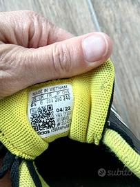 scarpe Adidas da bambino, numero 39 e 1/2, colore nero e inserti verdi fluo e giallo!