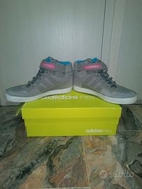 Vendo un paio di scarpe a stivaletto, colore grigio, con lacci e chiusura a strappo, taglia 41 e 1/3.