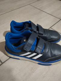 Scarpe Adidas bambino: marca Adidas; numero 37 e mezzo; colore blu scuro, blu elettrico e bianco; con strappi; usate