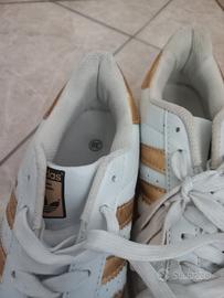 Scarpe Adidas bianche e oro, tenute molto bene, vendo perché nn uso. a 41 euro. Affare x un buon usato di marca