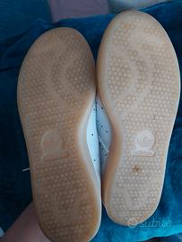 Scarpe Adidas Stan Smith pari al nuovo con unnpaio di lacci di ricambio. Indossate solo per poche ore come si può vedere dalle suole, ma tolte per numero troppo piccolo, numero 38
