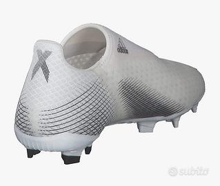 Scarpe da calcio con tacchetti Adidas Ghosted, da bambini, elastiche e senza lacci, quindi comodissime per evitare perdite di tempo ai bambini che ancora non sanno allacciarsi le scarpe. Usate per meno di una stagione perchè ormai piccole, sono marcate numero 38 2/3 ma calzano come un 35-36. Colore bianco, piccoli segni d'uso.