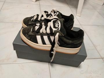 Vendo scarpe Adidas Campus nere con righe bianche, Usate poco senza scatola originale. Taglia 38.5 Prezzo trattabile