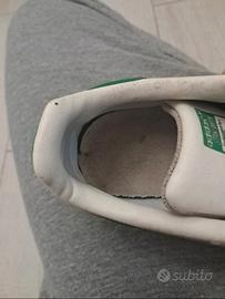Scarpe Adidas Stan Smith da donna, bianche e verdi. Numero 38 e 2/3. La suola è un po' rovinata (vedi seconda foto) ma internamente la scarpa è ok (terza foto).