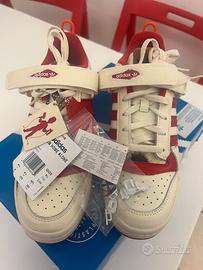 Vendo scarpe originali Adidas Forum Home Alone edizione limitata misura 42 2/3 nuove mai indossate con relative etichette e clip oltre alle solette di ricambio con le immagini del film mamma ho perso l’aereo.