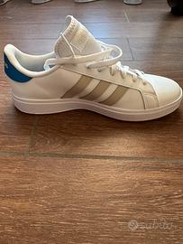 Sneakers bianche con dettaglo blu e beige Adidas Grand Court Base 2.0 nuova mai indossata taglia 44.