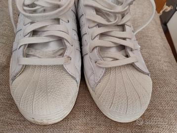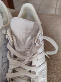 Bianche perfette solo provate in ottime condizioni pari al nuovo. Logo Adidas inciso sotto rilievo sulla parte esterna delle scarpe.