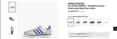 Vendo sneakers adidas modello SL 72 RS UNISEX TAGLIA 38 e 2/3 (quasi 39) Scarpe NUOVE con cartellino e scatola. Non sono mai state usate, purtroppo ho preso la taglia sbagliata e ho chiesto il reso dopo il periodo consentito ma sono molto belle.