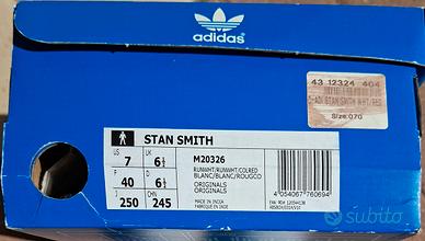 Scarpe Adidas Stan Smith M20326 Bianco Rosso, unisex, numero 40, in buone condizioni. Soletta originale sostituita con una più confortevole.