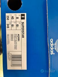 adidas superstar usate, molti segni d'usura ma ancora utilizzabili, taglia 40, punta d'alluminio