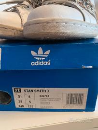 Scarpa sneaker Adidas Stan Smith J, bianche con inserti in cavallino N 38 vendo causa numero piccolo
