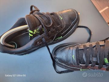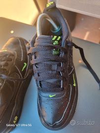 Scarpe Air Force 1 nere, con baffo verde fluo in buone condizioni , taglia 37.5 EU, da ragazzo