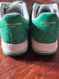 Vendo sneakers modello Nike Air Force 1 personalizzate con stile Louis Vuitton monogram verde. Scarpe molto particolari e di forte impatto, perfette per outfit streetwear. Condizioni: ottime / come da foto Colore: verde e bianco Dettagli: •Monogram LV su tutta la scarpa •Scritta “AIR” laterale •Comode e resistenti Spedizione veloce Prezzo trattabile