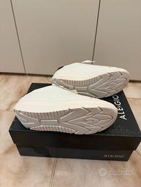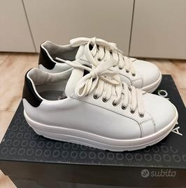 La Scarpa Biomeccanica dona la piacevole sensazione di una passeggiata a piedi nudi in riva al mare; allo stesso tempo aumenta l'effetto dell'esercizio fisico e attutisce l'impatto tra corpo e terreno assicurando l'assorbimento degli urti e la perfetta forza del piede. Colore bianco in pelle, tallone nero numero 38. Ottime condizioni. Costano 270€ nuove.