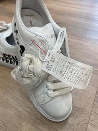 Scarpe McQueen bianche UNISEX con scritta nera in risalto sul lato delle scarpe. Articolo compreso di cartellino e lacci di riserva. Mai utilizzate e ovviamente nuove, sono molto comode e possono appararire sia come eleganti sia come sportive. Taglia 43. Spedizione veloce